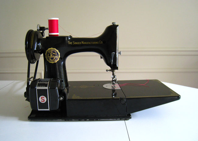 She’s a pre-WWII Singer Featherweight sewing machine. So she’s kind of a new-to-me situation. My grandma has a similar one that she and my mom have used to sew many beautiful things, including both of these lovely Halloween costumes: